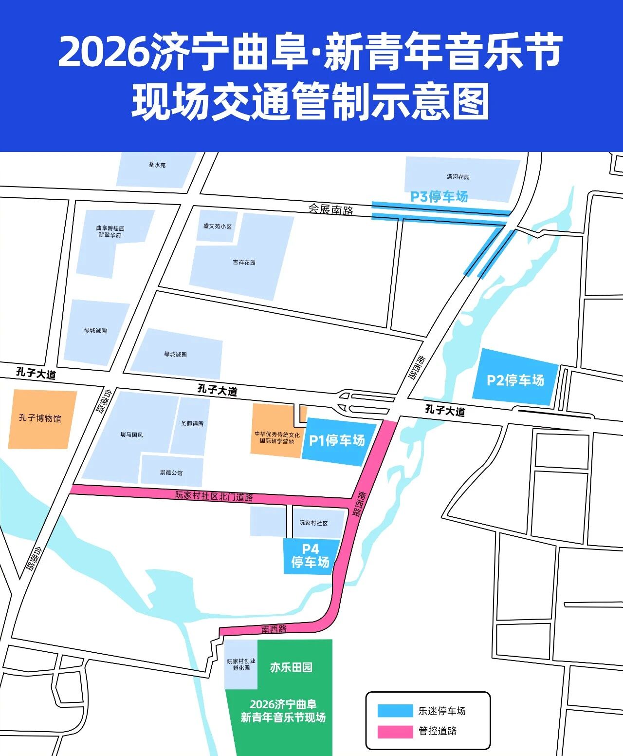 2026济宁曲阜·新青年音乐节将于4月18日13时至21时45分、4月19日13时至21时45分在曲阜市亦乐田园举办。为确保活动期间道路交通安全有序畅通,根据《中华人民共和国道路交通安全法》第三十九条之规定,决定对亦乐田园周边路段实施临时交通管制,现将有关事项通告如下:
